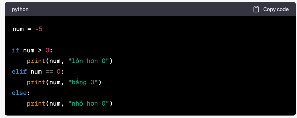 4.Sử dụng câu lệnh điều kiện để kiểm tra một số có lớn hơn hay nhỏ hơn 0